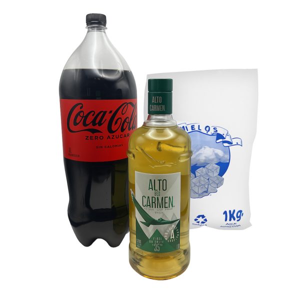 Pisco Alto del Carmen 1Lt. 35º + Bebida 3L + Hielo 1kg